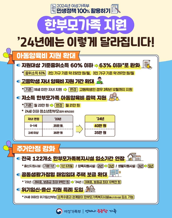 전국 122개소 한부모가족복지시설 입소기간 연장