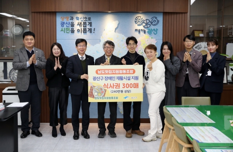 남도맛집지원협동조합은 광산구 학교급식 식재료를 공급하는 업체로, 수익 사회적 환원과 지역 장애인의 사회 활동 지원을 위해 식사권을 지원했다.