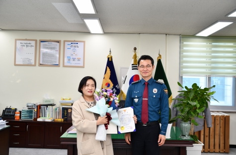 ![]() 1.10. 화순경찰서장이 CCTV 통합관제센터 요원에게 감사장을 수여하는 장면 |