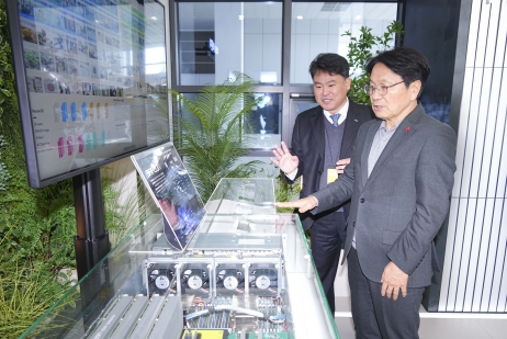 강 시장은 10일 오후 국가인공지능(AI)데이터센터를 방문, 지난 11월 본격 서비스를 시작한 시설과 올해 준공 예정인 실증·창업동 공사 현장을 둘러봤다.