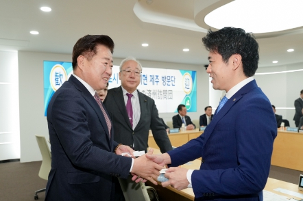 미야시타 지사는 “1월 20일부터 아오모리현과 인천을 잇는 항공노선이 재개되면 제주도와의 교류가 더욱 활발해질 것”라며 “이번 방문이 아오모리현과 제주도의 관계를 더욱 끈끈하게 다지고, 동북아시아와 한일관계가 더욱 발전하는 계기가 되길 기대한다”고 전했다.