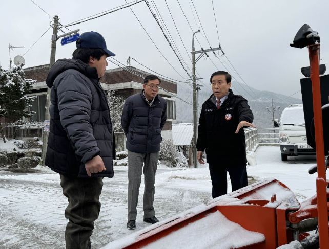 현장에서 직접 적설량, 결빙 상태를 살피고 제설작업을 총괄 지휘했으며 마을 주민들을 만나 겨울철 불편 사항도 청취해 그 자리에서 대책 마련을 지시했다.