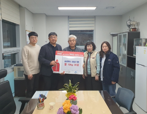 ㈜디엘이앤씨와 ㈜부강티엔씨에서도 각각 쌀 10㎏ 12포씩 총 24포를 기탁했고 뒤웅박고을에서는 성금 10만 원을 전하며 나눔에 동참했다.