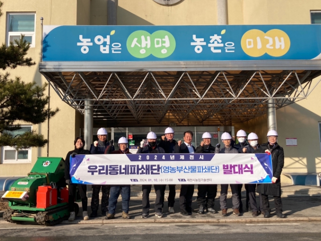 기술보급과는 영농부산물 안전처리지원 사업 진행으로 시내권 내 9개 시내동의 영농부산물(잔가지, 고추대등) 안전처리를 위한 영농부산물 파쇄요원 9명과 접수원 1명을 채용하고, 10일 제천시농업기술센터 청사 앞에서 발대식을 개최했다.