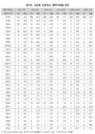 ![]() 경기도 시군별 초등학교 통학거리별 분포 |