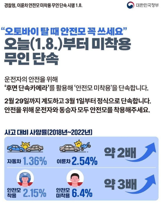 안전을 위해 운전자와 동승자 모두 안전모를 착용해주세요.