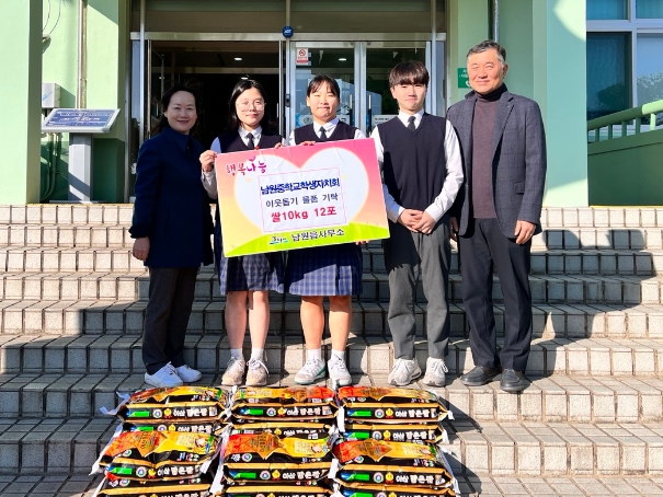 학생자치회에서 플리마켓 행사에서 발생한 수익금(432,000원)을 지역사회에 전액 기부하여 나눔 문화를 실천하자는 의견이 모였다. 이에 불우 이웃을 돕기 위해 남원읍에 쌀로 기부했다.