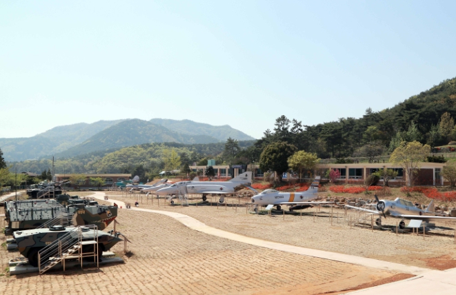 2018년 5월 1일 개장한 밀리터리테마파크는 기존 호담항공우주전시장과 연계하여 우리나라 군대 역사와 문화에 대한 전시, 교육, 체험을 동시에 공유할 수 있는 곳으로, 육해공 무기전시장, 호국안보전시관, 시뮬레이션 체험장, 야외 교육장 등을 갖추고 있다.