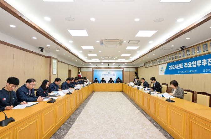 영덕군은 올해 발 빠른 업무 추진과 능동적인 성과 달성을 위해 연초 보고회를 미리 준비해 예년보다 앞당겨 개최했으며, 전 직원이 참여하는 부서별 보고 방식을 통해 군정의 방향성과 사업의 세부 내용을 직원들과 공유해 업무 능률을 높이도록 했다.