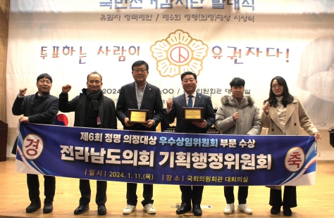 ![]() 전라남도의회 기획행정위원회, 정명(의정)대상 우수 상임위원회 선정 |