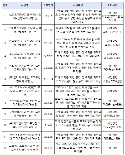 ![]() 최근 3년간 의료분야의 리베이트 사건 제재 내역 |