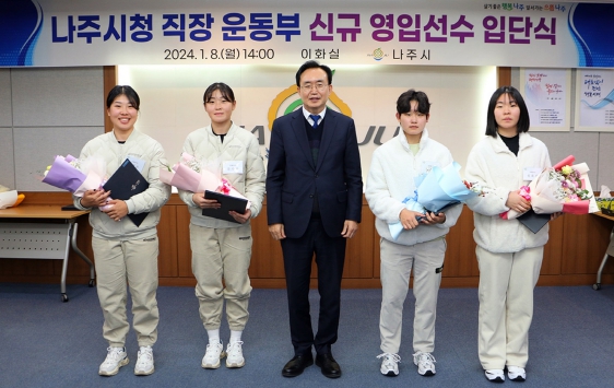 ![]() 나주시가 2024년 나주시청 직장운동부 사이클, 육상팀의 신규 및 재계약 선수 입단식을 개최했다. |