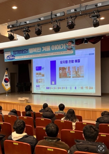 1월 10일에는 계절학교 문화·예술프로그램 운영으로 대구계명아트센터에서 공연되는 뮤지컬 ‘오페라의 유령’을 관람했다. 뮤지컬 관람 에티켓과 ‘오페라의 유령’ 소설에 대한 사전교육을 받은 학생들은 무대에서 펼쳐지는 환상적인 공연에 흠뻑 빠지며 즐거운 시간을 가졌다.