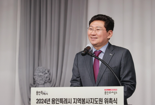 ![]() 이상일 용인특례시장이 11일 시청 컨벤션홀에서 열린 지역봉사지도원 위촉식에서 인사말을 하고 있다 |