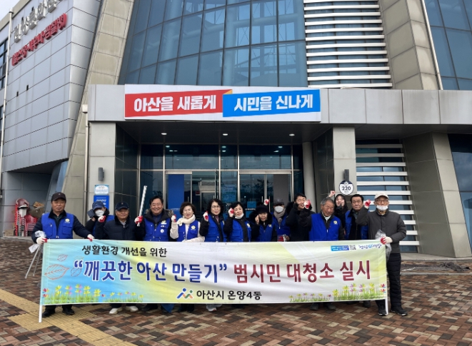 이날 봉사는 추운 날씨에도 불구하고 온양4동 바르게살기위원회 위원 등 30여 명이 참여해 온양4동 행정복지센터, 아산환경과학공원 일대에서 쓰레기 수거 등 환경 정비 활동을 시행했다.