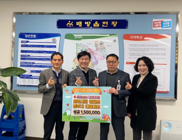 한편 와이시티 입주자대표회는 매해 성금모금에 동참해오고 있으며, 전달받은 성금은 충청남도공동모금회를 통해 아산시 내 사회적 돌봄이 필요한 분들의 심리·정서·교육·자립지원 등 여러 분야에 활용될 예정이다.