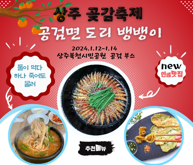 이번 음식마당 부스 운영은 2023년도 상주세계모자페스티벌에서 공검면이 도리뱅뱅이, 어탕국수를 대표메뉴로 하여 읍면동 부스 운영 부문에서 금상을 수상하는 등 음식의 맛과 서비스를 인정받아 축제운영위원회 요청으로 부스를 운영하게 됐다.