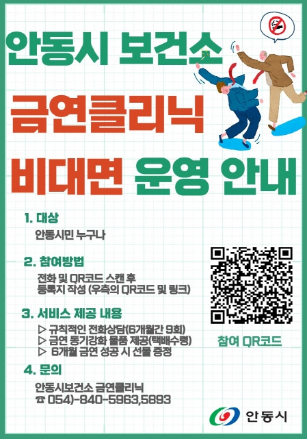 안동시 보건소 금연클리닉은 평일 연중(09:00~18:00) 운영하며, 금연 희망자는 안동시 보건소 금연클리닉으로 문의하면 자세한 사항을 안내받을 수 있다.