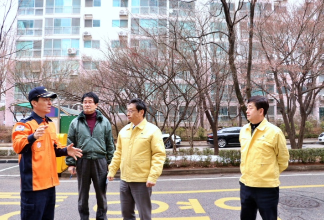 ![]() 좌측부터(파주소방서장,아파트관리소장,행정2부지사,파주부시장) 현장 안전컨설팅중 |