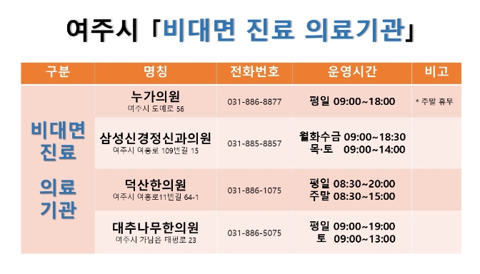 ![]() 여주시, '비대면 진료 의료기관' 4개소 운영 |