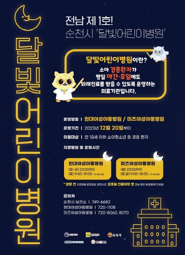 시 관계자는“맞벌이 부부의 육아고충을 덜어주는 달빛어린이병원 운영에 시민분들의 호응이 높음을 실감한다”며, “올해에는 순천형 소아 응급실 구축과 임산부․신생아 구급차 운영 등 응급의료 사각지대 해소에 최선의 노력을 다하겠다”며 의지를 밝혔다.