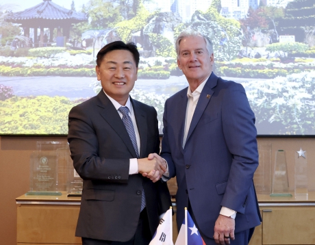 또 11일 김 지사는 At Home, 피자헛 등을 비롯한 미국 주요 대기업 본사가 다수 위치해 있으며 금융·상업중심지인 플레이노시 존 먼스(John B. Muns) 시장과 공식 면담을 갖고 양 지역간 상호 교류와 경재통상협력 구축을 위해 논의했다.