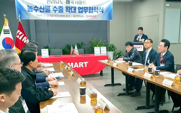 김영록 지사는 앞서 미국 H마트 본사에서 권중갑 H마트 회장과 함께 전남 농수산식품의 미주지역 수출 확대를 위한 업무협약을 했다.
