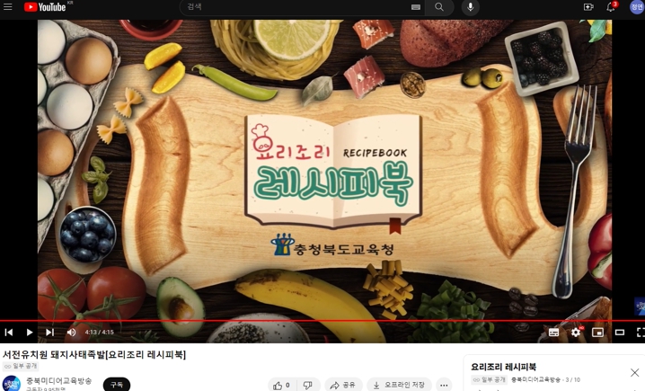 한편, 학교급식 온라인 조리 콘텐츠는 충북교육청 직속기관인 교육연구정보원의 교육미디어교육방송에 탑재해 공개하고 있다.