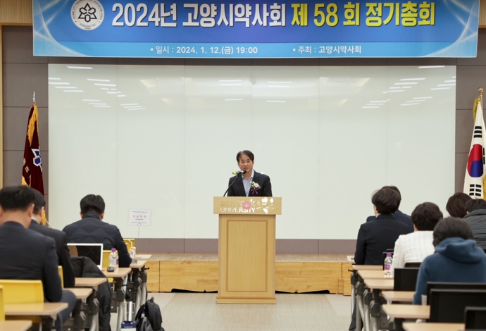 ![]() 제58회 고양시 약사회 정기총회에서 축사하는 이동환 고양특례시장 |