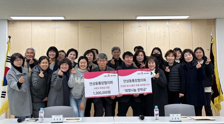 김상동 연성동장은 “매년 뜻깊은 장학금과 후원금을 전달해 주시는 연성동 통장들에게 감사드린다. 앞으로 연성동에서도 청소년의 꿈을 응원하기 위한 다양한 방법을 모색하겠다”라고 말했다.