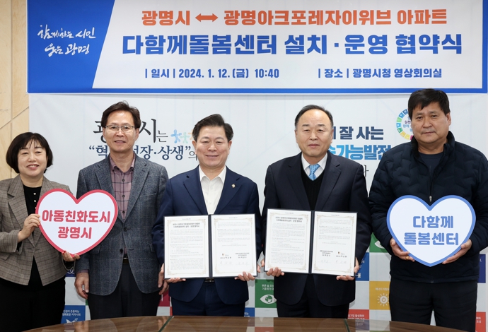 광명아크포레자이위브 아파트에서는 이번 협약에 따라 5년 동안 주민공동시설 일부(102.75㎡)를 다함께돌봄센터 건립을 위한 공간으로 무상 제공한다. 광명아크포레자이위브 아파트에 다함께돌봄센터가 설치되면 관내 다함께돌봄센터는 8곳으로 늘어난다.