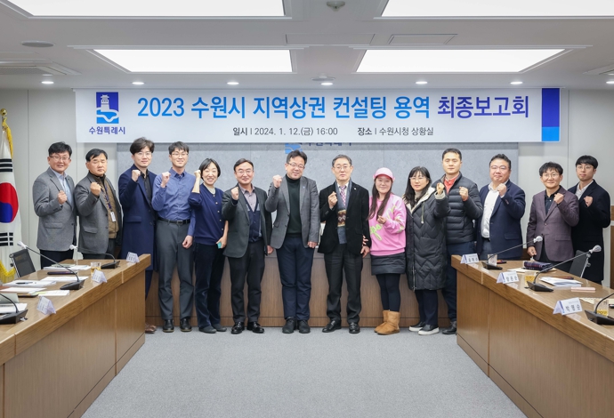 수원시는 12일 시청 상황실에서 ‘수원시 지역 상권 컨설팅 용역 최종보고회’를 열고, 용역 결과를 발표했다. 팔달구 5개 주요 상권 현황을 조사했고, 상권에 ‘지역상권법’ 적용이 가능한지 여부를 검토했다. 용역은 지난해 11월 9일부터 12월 29일까지 진행됐다.