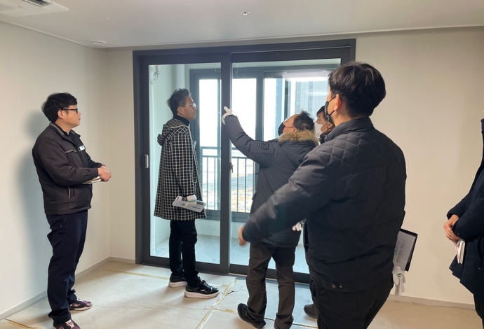 이날 포항시는 건축, 토목, 조경, 소방, 교통, 기계, 전기, 통신 등 8개 분야 12명의 위원과 함께 아파트 세대 내 전유부분 및 공유부분, 설비, 조경 및 부대시설의 시공 상태, 주요 하자와 시공상황 등에 대한 점검을 진행했다.