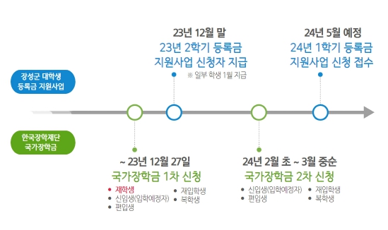 2024년도 1학기분 대학생 등록금 지원은 오는 5월부터 신청을 받을 예정이다. 사전에 국가장학금을 신청해야 지원자격이 주어지므로, 관련 내용을 미리 살펴볼 필요가 있다. 자세한 사항은 장성군 누리집 공지사항을 검색하거나, 평생교육센터 인재교육지원팀에 문의하면 된다.