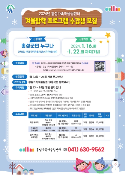 ![]() 홍성가족어울림센터 겨울방학 프로그램 수강생 모집 |