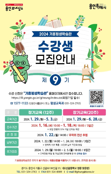 ![]() 용인특례시 기흥평생학습관의 '제9기 수강생 모집' 홍보물 |