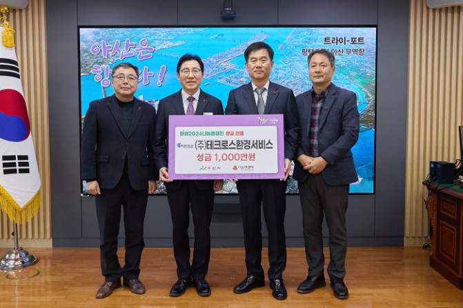 박경귀 아산시장은 “늘 지역사회를 위해 노력해 주시는 ㈜테크로스환경서비스에 감사드리며, 맡겨주신 성금은 도움이 필요한 곳에 희망이 될 수 있도록 잘 전달하겠다”고 감사의 마음을 전했다.