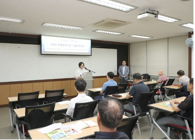 ![]() 지난해 9월 한국폴리텍대학 서울정수캠퍼스에서 용산구 일자리기금 민관협력 일자리사업에 선정된 ‘파일항타시공 기술인력양성 과정’ 입학식이 열렸다. |