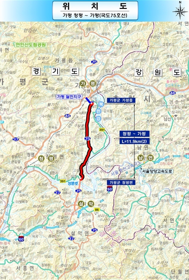 ![]() 국도 75호선 청평~가평 개량 사업 위치도 |