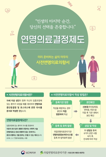 단원보건소 건강증진과장은 “고령화 시대 삶의 존엄한 마무리에 대한 관심이 높아지고 있는 만큼 사전연명의료의향서 등록사업 추진에 최선을 다하겠다”고 말했다.