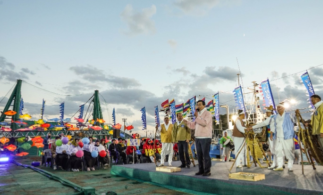 ![]() 2023목포항구축제 기간 해상무대에서 파시만선이다! 전통경매를 선보이는 장면 / 목포시 제공 |