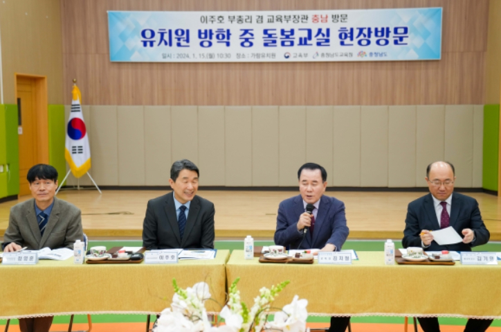 15일 오전 김 교육감과 이 부총리는 내포에 있는 가람유치원을 방문하여 방학 중 방과 후 학교와 돌봄 활동을 돌아보고, 유아교육발전 방향에 대해 학부모 등 교육공동체의 의견을 청취한다. 또 유보통합 관련하여 충남의 진행 상황과 현안 문제를 논의한다.