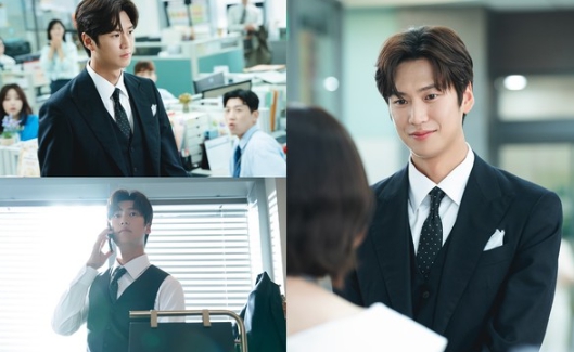 공개된 사진 속 유지혁은 이전의 딱딱하고 투박한 분위기는 온데간데없는 눈부신 비주얼로 온 사무실의 시선을 한 몸에 받고 있다. 안경만 벗은 것이 아니라 자연스럽게 세팅된 헤어스타일, 이상적인 수트핏까지 더해져 세련된 매력과 여유 있는 분위기까지 엿보인다.