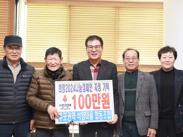 ![]() 주포권역 석양마을 협동조합, 함평군 이웃돕기 성금 100만원 기탁 |