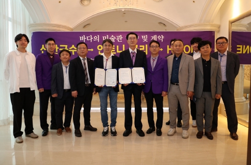 ![]() 지난 2023년 10월, 서울에서 에이치존과 신안군수가 작품 협약식 후 관계자들과 기념 촬영을 하고 있다. (왼쪽에서 5번째) 에이치존 대표 이대형, 박우량 신안군수 |