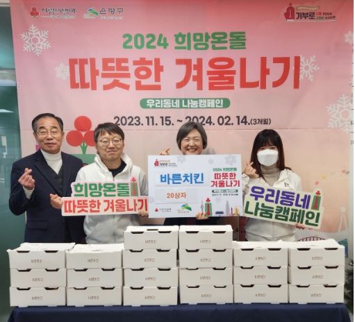 ㈜이루에프씨는 사회복지공동모금회와 함께하는 ‘2024 희망온돌 따뜻한 겨울나기’ 사업에 동참해 치킨 20마리를 기부했다.