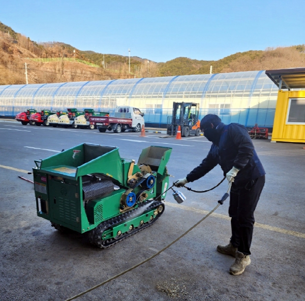 이에 농기계 임대사업소에서는 임대 농업기계가 과수화상병의 전염 통로가 될 가능성을 사전에 차단하기 위해 주요 과수 임대 기종을 사용 후 철저히 소독하여 과수화상병 예방에 만전을 기하고 있다.