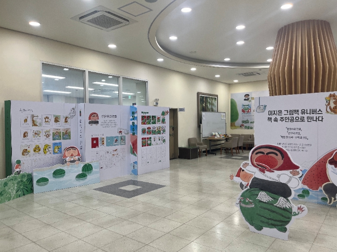 ![]() 평생교육학습관 1층 로비에서 1월 16일부터 2월 25일까지 열리는 이지은 작가의 ‘그림책 전설 시리즈’ 전시회 모습 |