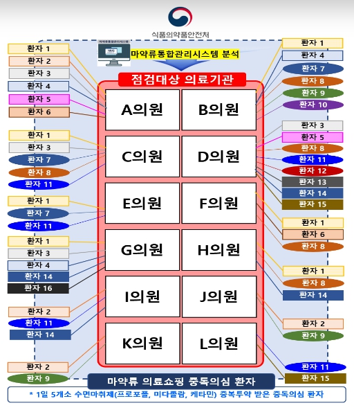 ![]() 의료쇼핑 중독 의심 환자 및 과다처방 의료기관 적발 사례 |