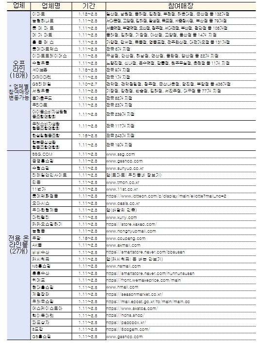 ![]() 「대한민국 수산대전-설 특별전」 참여 업체 |